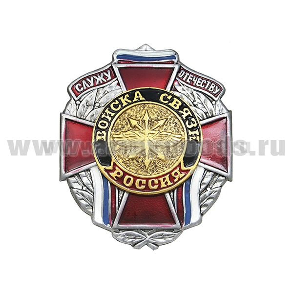 Значок мет. Служу отечеству Войска связи (красн. крест)