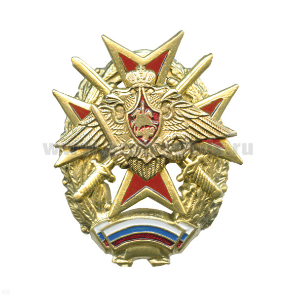 Значок мет. Мальт. крест с орлом РА и мечами (с флагом РФ внизу) красн. с окантовкой