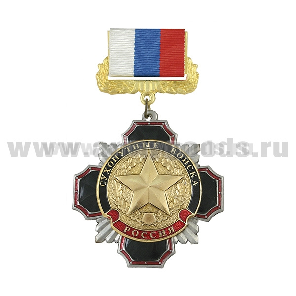 Медаль Стальной черн. крест с красн. кантом Сухопутные войска (эмбл ст/обр) (на планке - лента РФ)