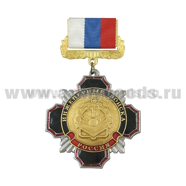 Медаль Стальной черн. крест с красн. кантом Инженерные войска (на планке - лента РФ)