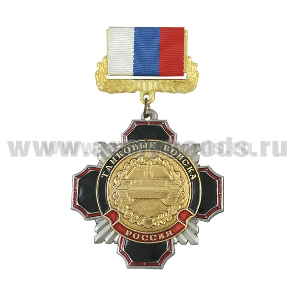 Медаль Стальной черн. крест с красным кантом Танковые войска (эмбл. ст/обр.) (на планке - лента РФ)
