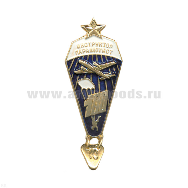 Значок мет. Инстр.-парашютист 100 прыжков (с желт. звездой) хол. эм.