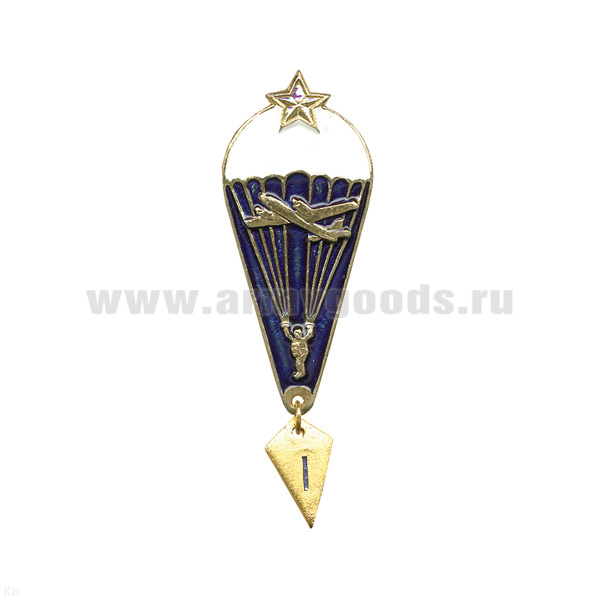 Значок мет. Парашютист-отличник 10 прыжков (с орлом, красн. щитком, со звездой)