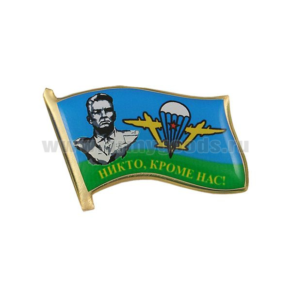 Значок мет. Флажок Никто, кроме нас! (флаг ВДВ, Маргелов) заливка смолой, на пимсе
