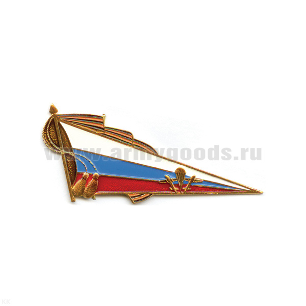 Флажок на берет неуст. (уголок) мет. ВДВ бол. (флаг РФ с орлом ВДВ) с эмблемой ВДВ и гвардейской лентой