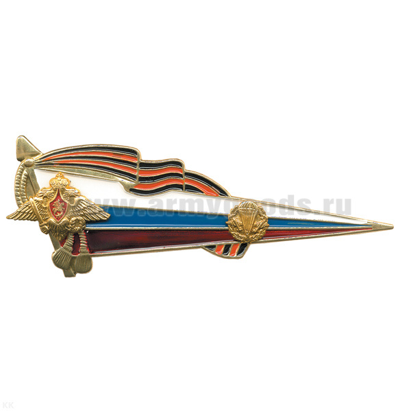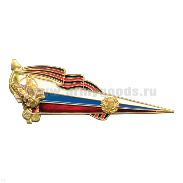 Флажок на берет неуст. (уголок) мет. ВДВ мал. (флаг РФ с георгиевской лентой и эмблемой ВДВ)