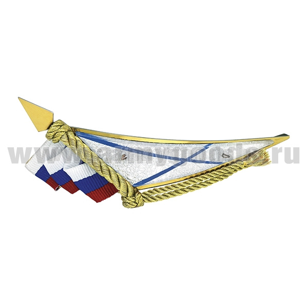 Флажок на берет неуст. (уголок) мет. ВМФ бол. с лентой триколор (нерж. сталь с зол. напылением и пласт. накладкой) матовый