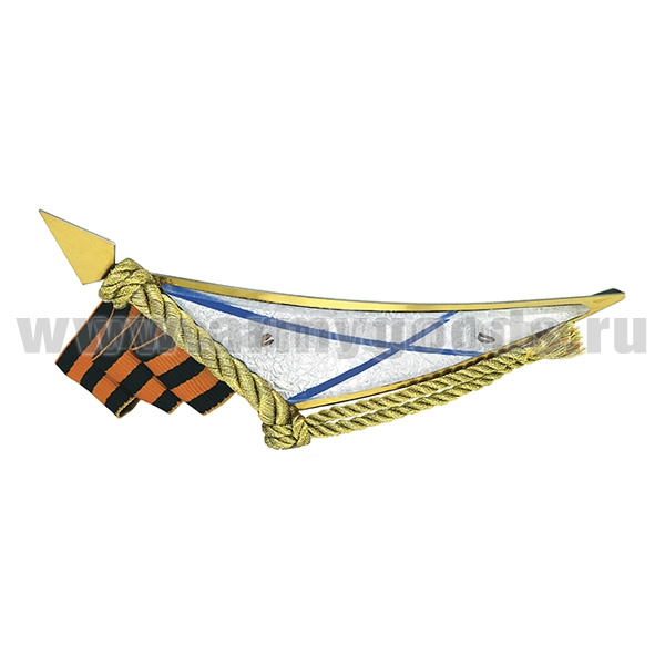 Флажок на берет неуст. (уголок) мет. ВМФ бол. с гвардейской лентой (нерж. сталь с зол. напылением и пласт. накладкой) блест.