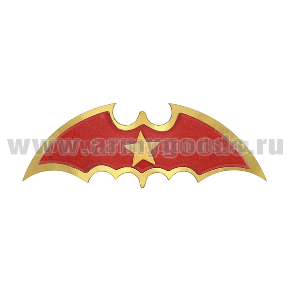 Эмблема на берет мет. Лет. мышь с накл. звездой (красный фон) нерж. сталь с зол. напылением и пласт. накладкой