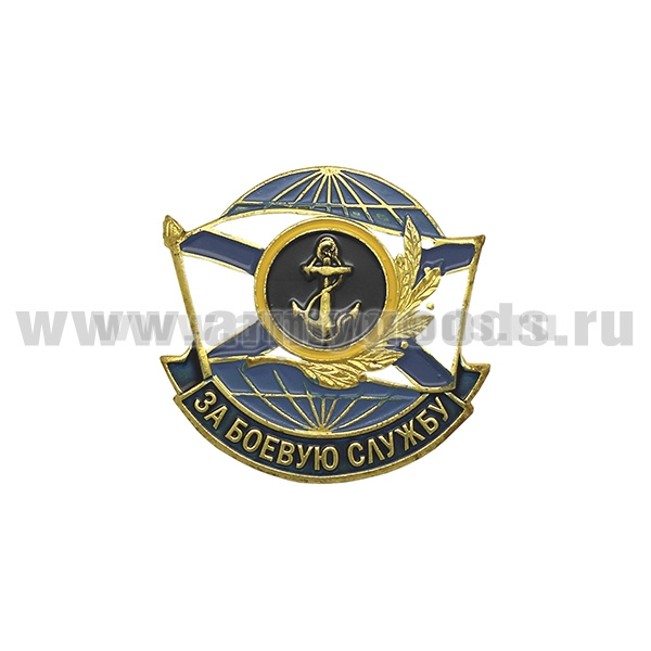 Значок мет. За боевую службу (якорь в круге с желтым кантом))