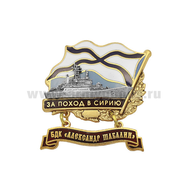 Значок мет. За поход в Сирию (флажок андр. с подвеской) БДК "Александр Шабалин"