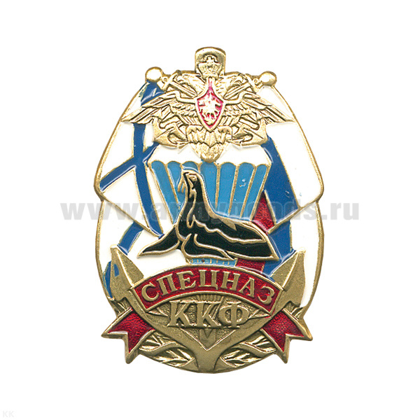 Значок мет. Спецназ ККФ (морской котик с флагами)