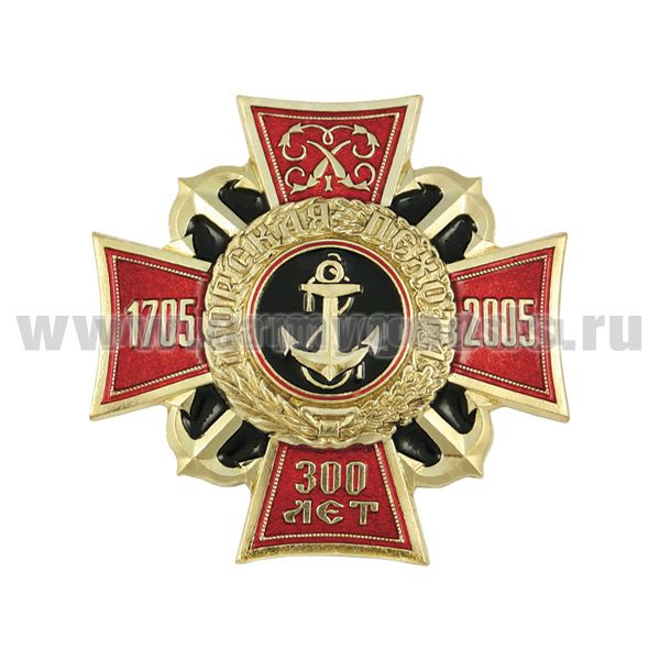 Значок мет. 300 лет Морской пехоте 1705-2005 (красный крест)