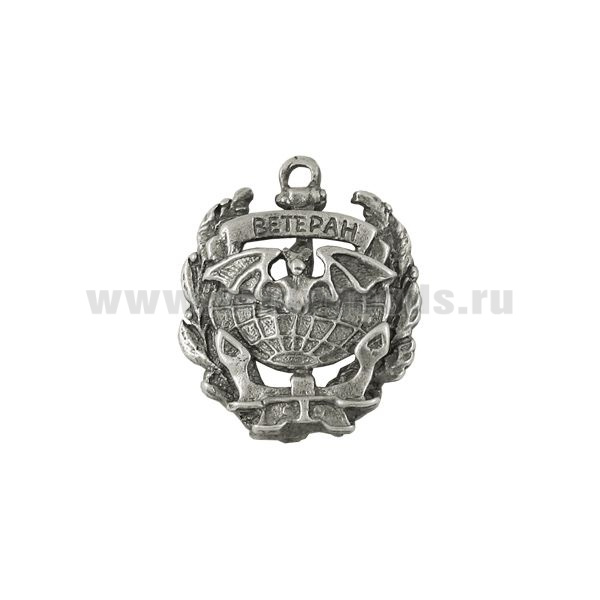 Значок мет. Ветеран военно-морской разведки (летуч. мышь на глобусе, с якорем, в венке) мал., на пимсе