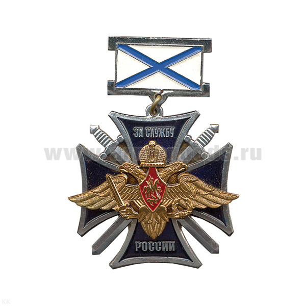 Медаль За службу России (с орлом РА) (на планке - андр. флаг мет.)