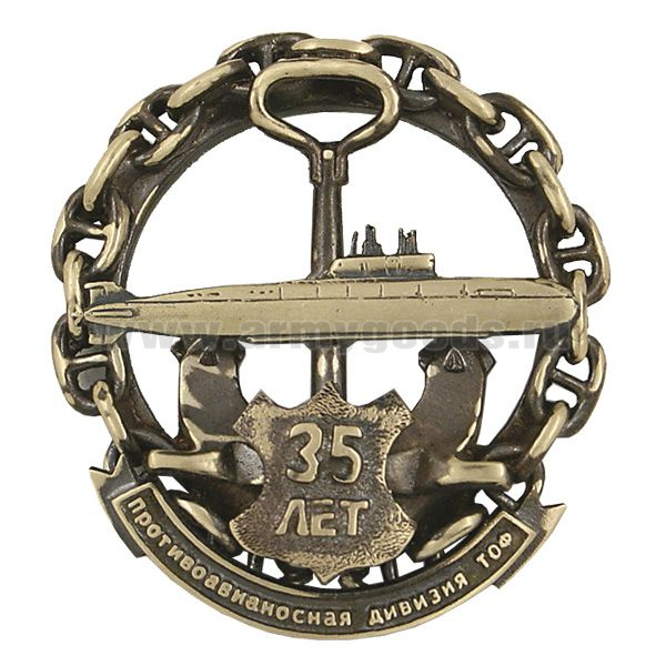 Значок мет. 35 лет 10 противоавианосной дивизии ТОФ (ПЛ пр. 971 на якоре, в цепи)