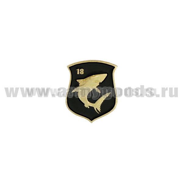 Значок мет. 18 ДИПЛ КСФ (эмблема на черном щите дивизии) мал, на пимсе