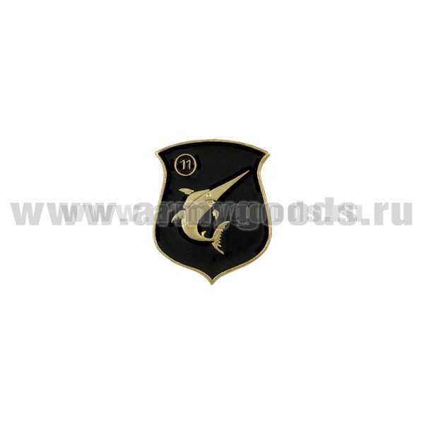 Значок мет. 11 ДИПЛ КСФ (эмблема на черном щите дивизии) мал, на пимсе