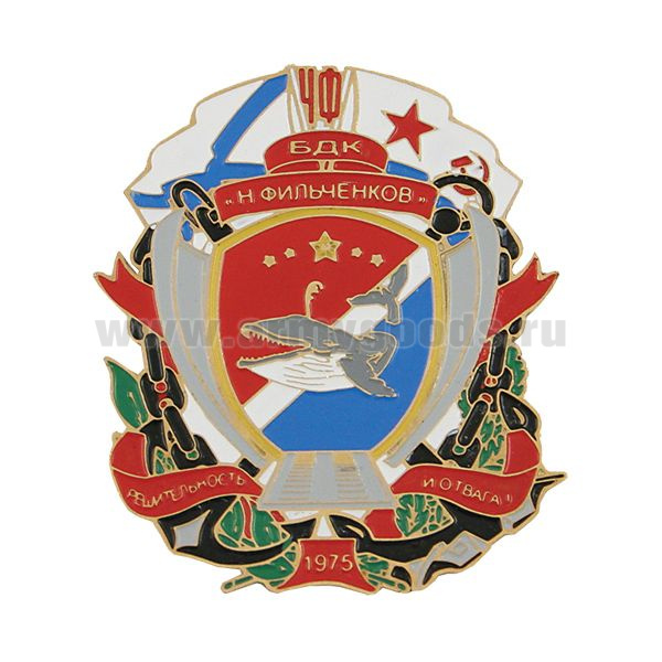 Значок мет. БДК "Н. Фильченков" Решительность и отвага! ЧФ 1975