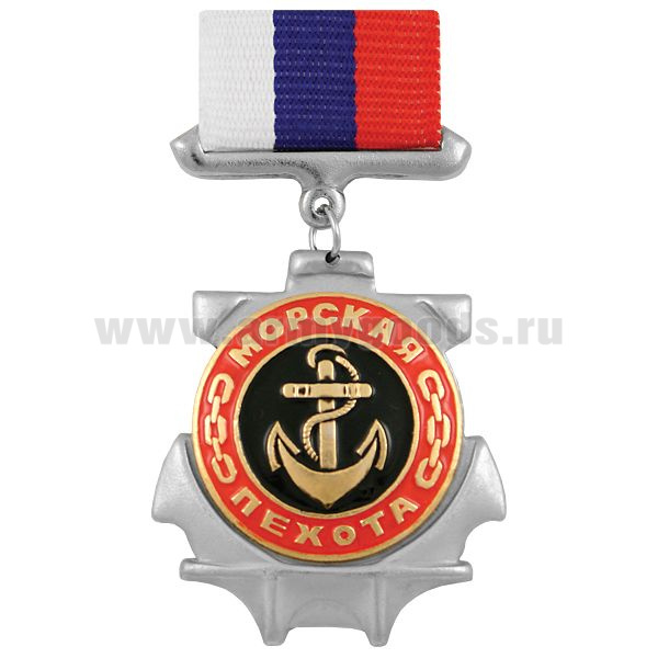 Медаль МП (якорь МП бол. на красн. фоне) (на планке - лента РФ)
