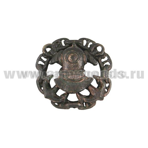 Значок мет. Водолаз на 2 якорях, в цепи (бол. чернен.)