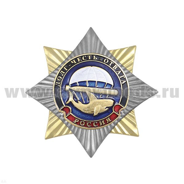 Значок мет. Орден-звезда Долг-Честь-Отвага (акула, торпеда, парашют)