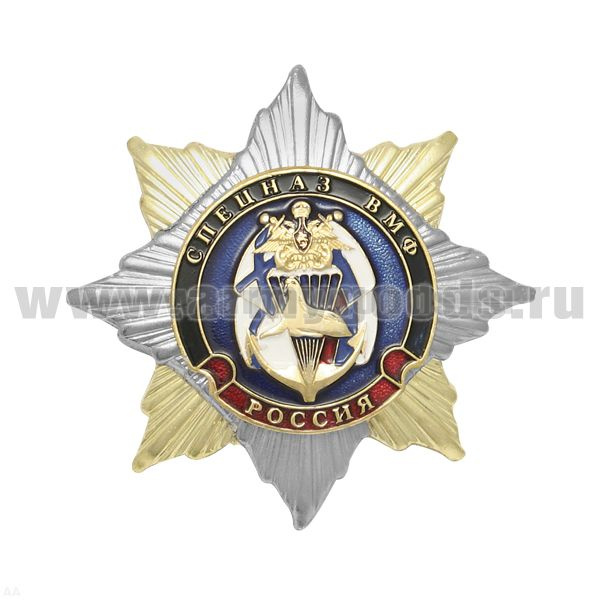 Значок мет. Орден-звезда Спецназ ВМФ (морской котик с флагами)