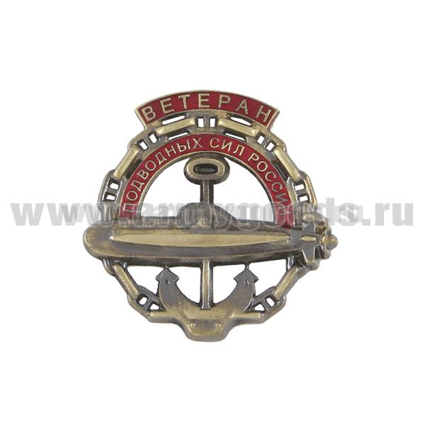 Значок мет. Ветеран подводных сил России (чернен. зол.)