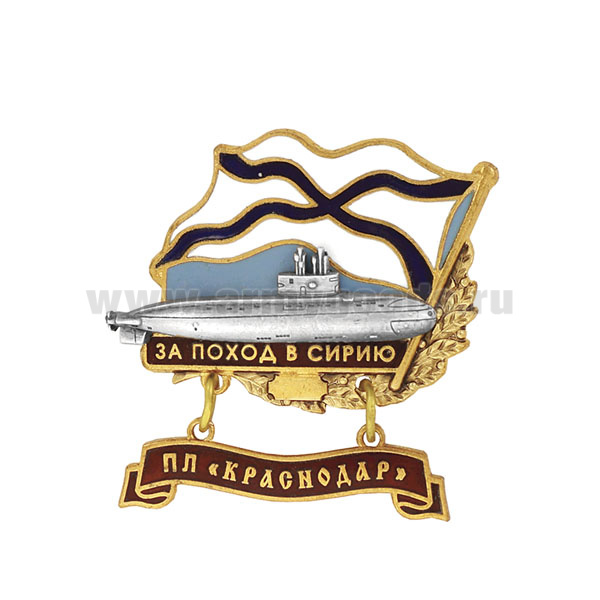 Значок мет. За поход в Сирию (флажок андр. с подвеской) ПЛ "Краснодар"