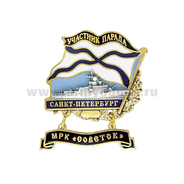 Значок мет. Участник парада Санкт-Петербург (флажок андр. с подвеской) МРК "Советск"