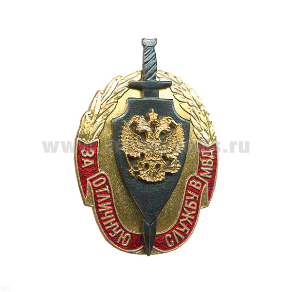 Значок мет. За отличную службу в МВД (с гербом РФ) 2 накл., гор. эм.