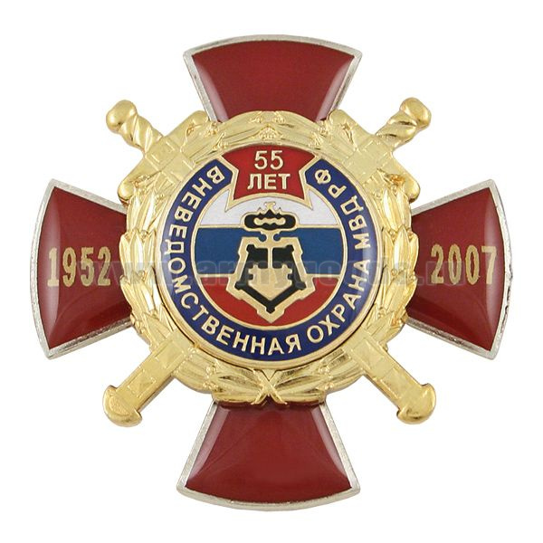 Значок мет. 55 лет вневедомственной охране МВД РФ 1952-2007 (красный крест с накл., смола)