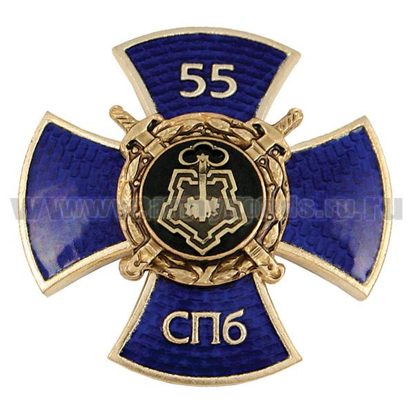 Значок мет. 55 лет (Управлению ВОХР) СПб (син. крест, гор. эм.)