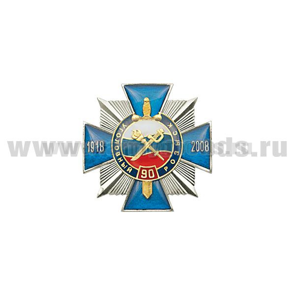 Значок мет. 90 лет уголовному розыску 1918-2008 (син. крест с накл., заливка смолой)