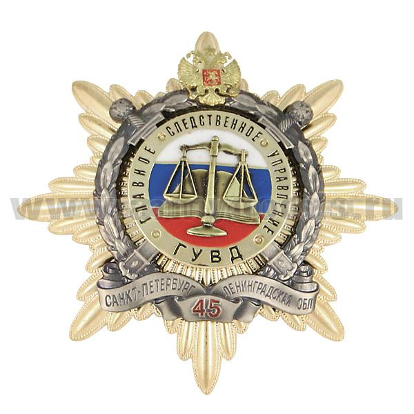 Значок мет. 45 лет Главному следственному управлению ГУВД Санкт-Петербурга и Ленинградской области