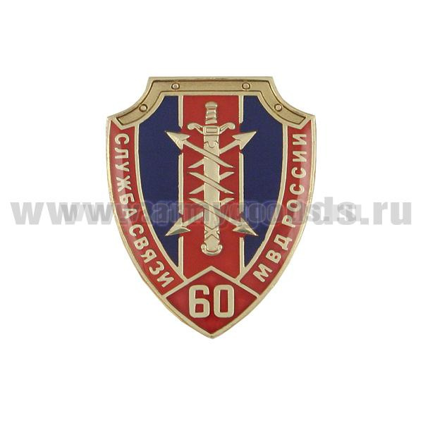 Значок мет. 60 лет службе связи МВД России (щит, заливка смолой) мал., на пимсе