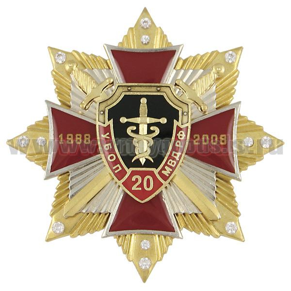 Значок мет. 20 лет УБОП МВД РФ 1988-2008 (красн. крест с накл., на звезде с фианитами)