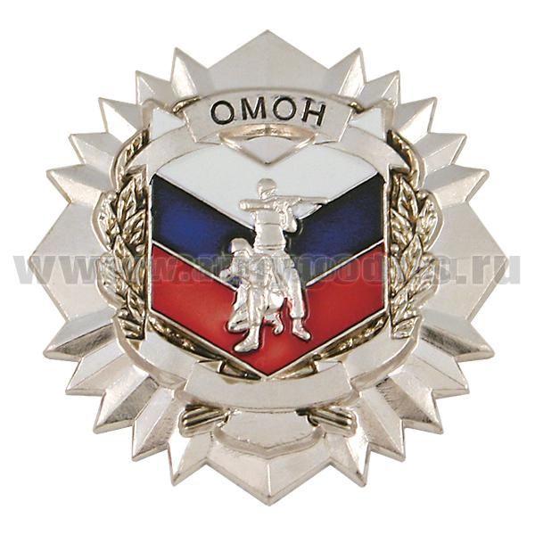 Значок мет. ОМОН (звезда с 2 ОМОНовцами) серебр.