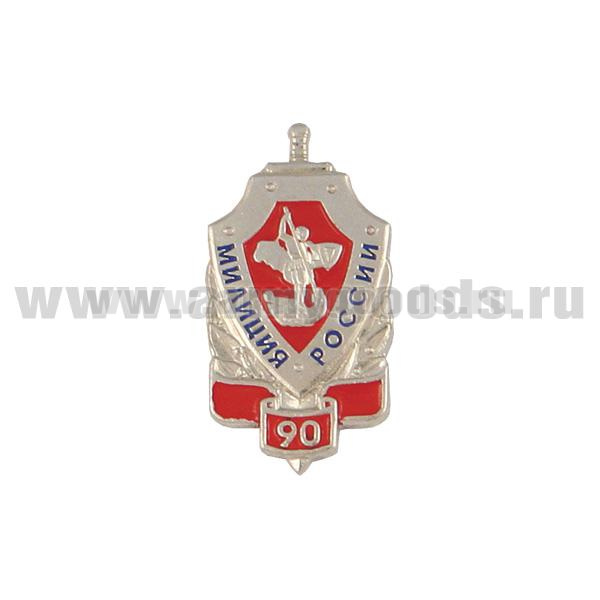 Значок мет. 90 лет милиции России (миниатюрный щит с эмбл. ЦАП МВД, хол. эм.) на пимсе
