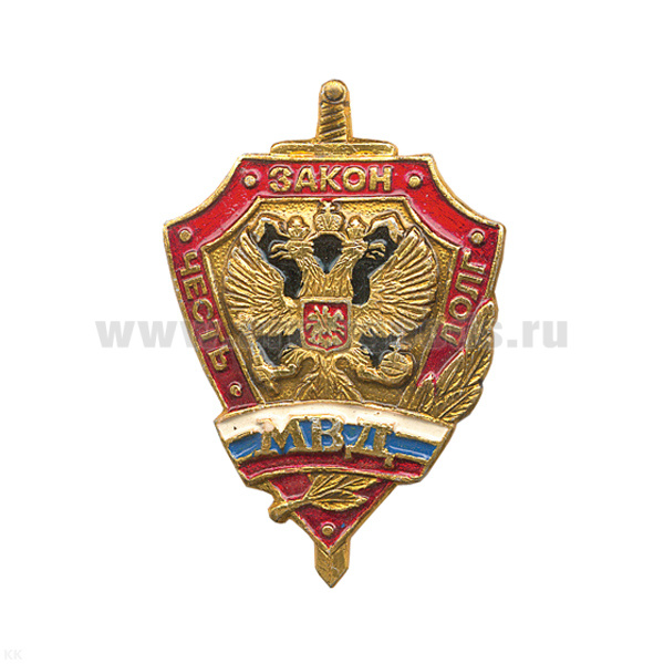 Значок мет. Крест с орлом МВД и мечами (с флагом РФ внизу) красн.