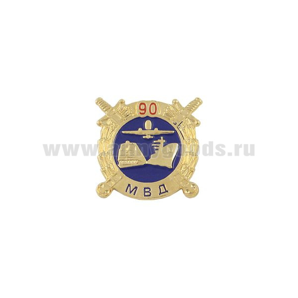 Значок мет. 90 лет Трансп. милиции МВД РФ (кругл, с эмбл. ВОСО, смола)