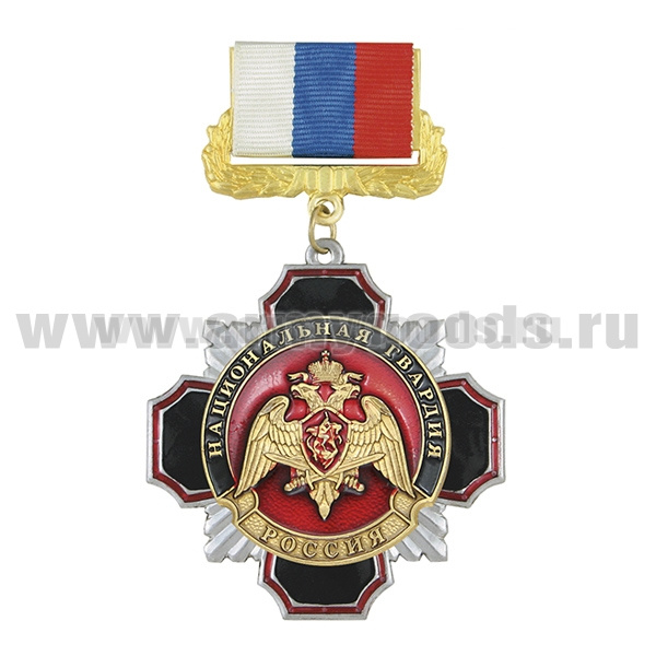 Медаль Стальной черн. крест с красн. кантом Национальная гвардия (на планке - лента РФ)