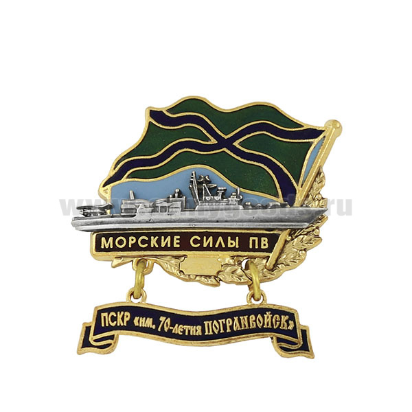 Значок мет. Морские силы ПВ ПСКР "Им. 70-летия Погранвойск" (с накладкой и подвеской) гор. эм