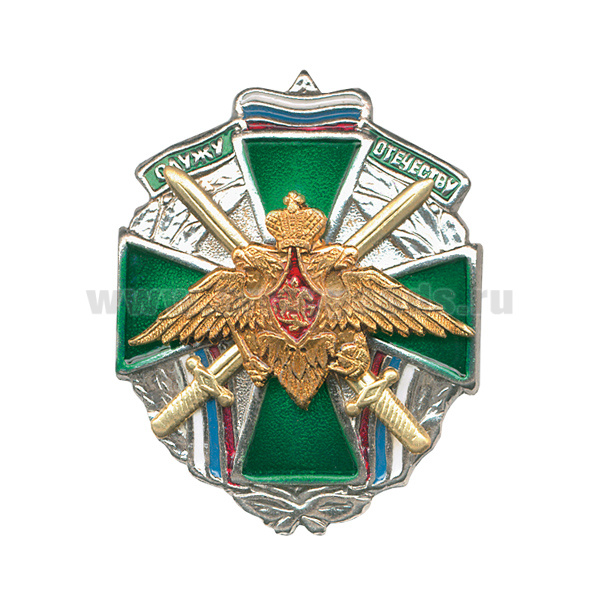 Значок мет. Служу отечеству (зел. крест с мечами и орлом ПВ)