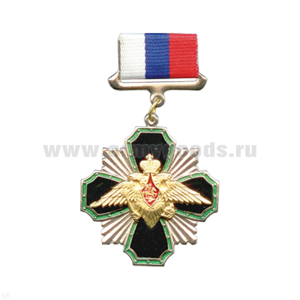Медаль (стальн. черн. крест с зел. кантом с орлом ПВ) (на планке - лента РФ)