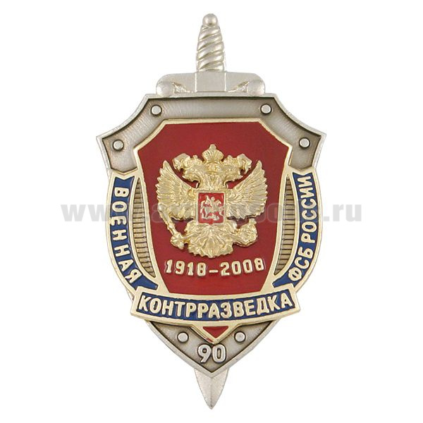 Значок мет. 90 лет военной контрразведке ФСБ России 1918-2008 (щит, 3 накладки)