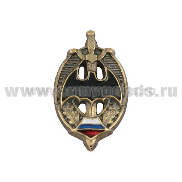 Значок мет. Спецназ (пикирующая птица над перекрещенными мечами, в венке с черной лентой) мал., на пимсе