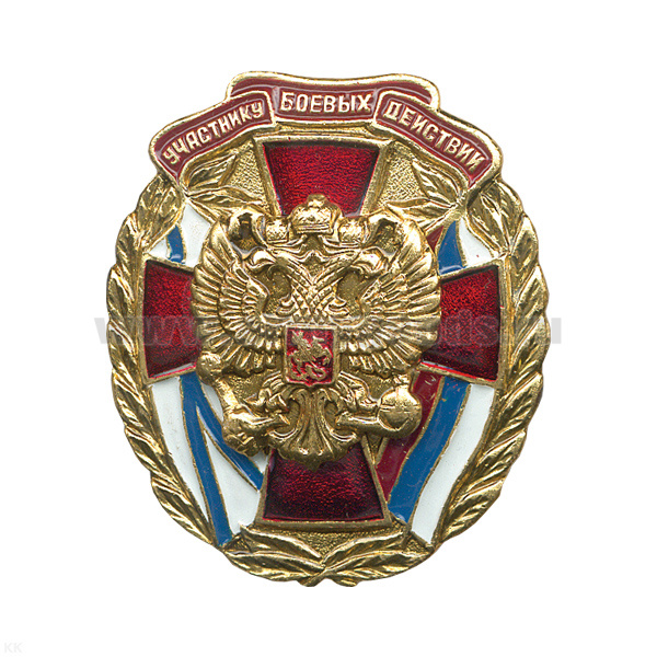 -Значок мет. Участник боевых действий (с накл. орлом РФ) лат.