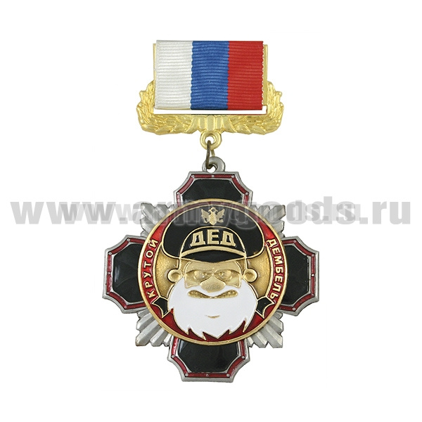 Медаль Стальной черн. крест с красным кантом ДЕД (крутой дембель) черн. (на планке - лента РФ)