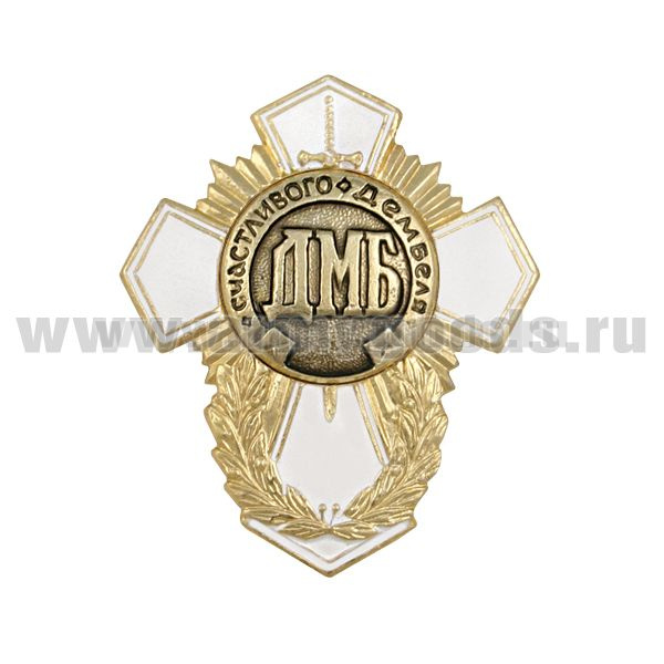 Значок мет. ДМБ счастливого дембеля (белый крест)